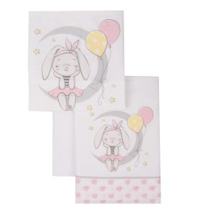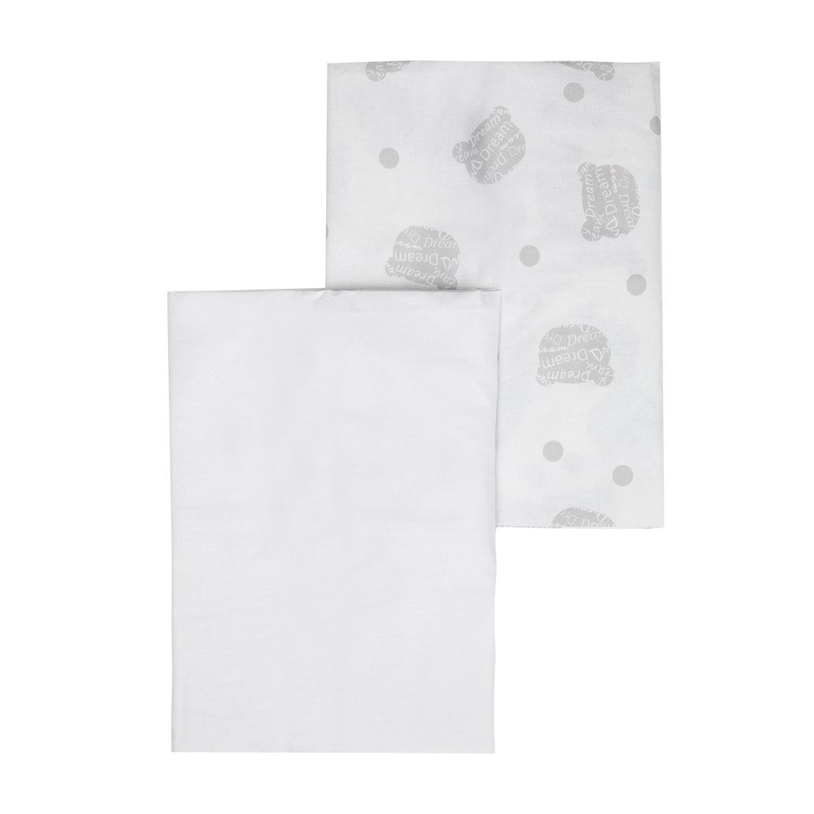 Lenzuolo con angoli per lettino in cotone. Pack di due lenzuola così composto: una in tinta unita bianca e una in dolce stampa a fantasia con orsetto. Coordinabile a tutta l’offerta unisex di tessile lettino Mawi.