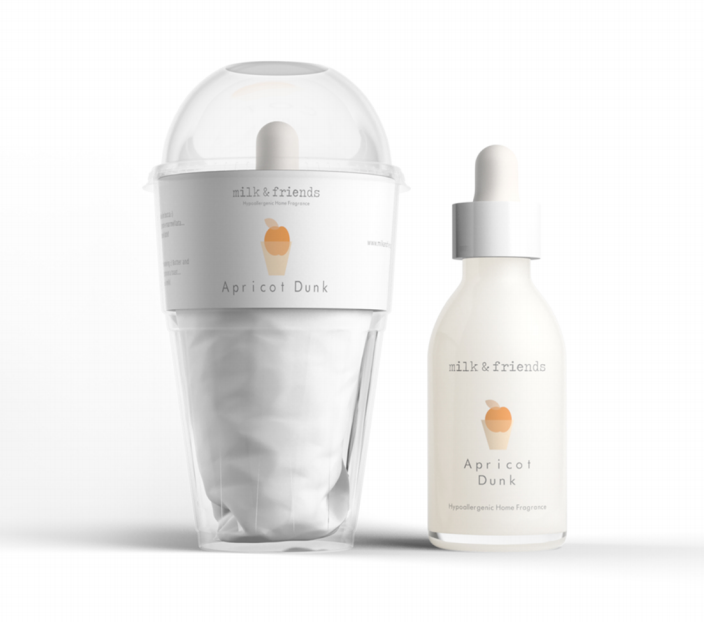 Milk & Friensds – Apricot Dunk. Fragranza per ambienti ipoallergenica, formulato per essere nebulizzato nell’aria attraverso diffusori ad ultrasuoni ed umidificatori a freddo. Adatto a profumare la casa, gli ambienti di lavoro, le stanze dei bambini.
