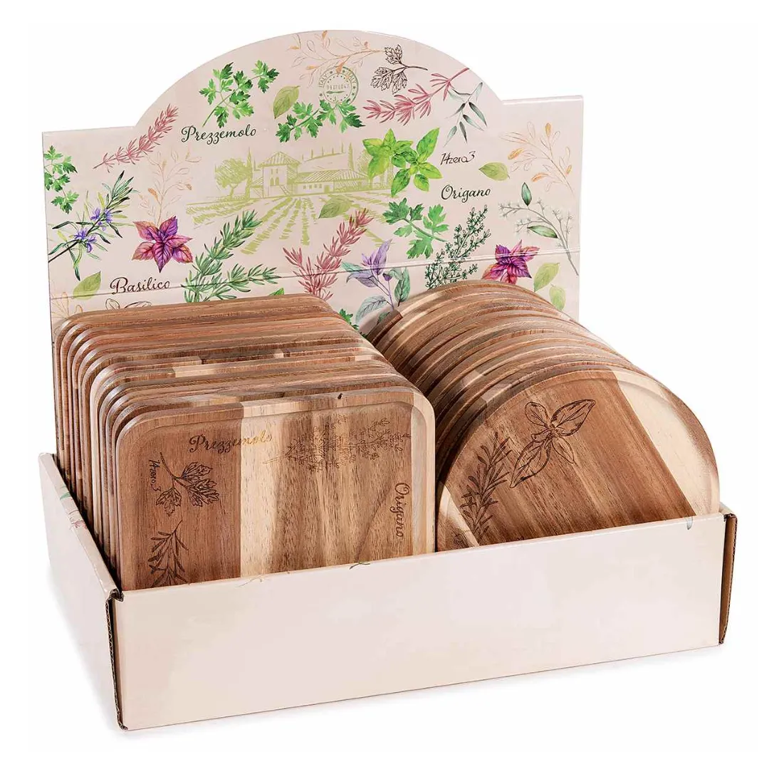Piattino e Vassoio alimentare in legno di acacia set 24 pezzi