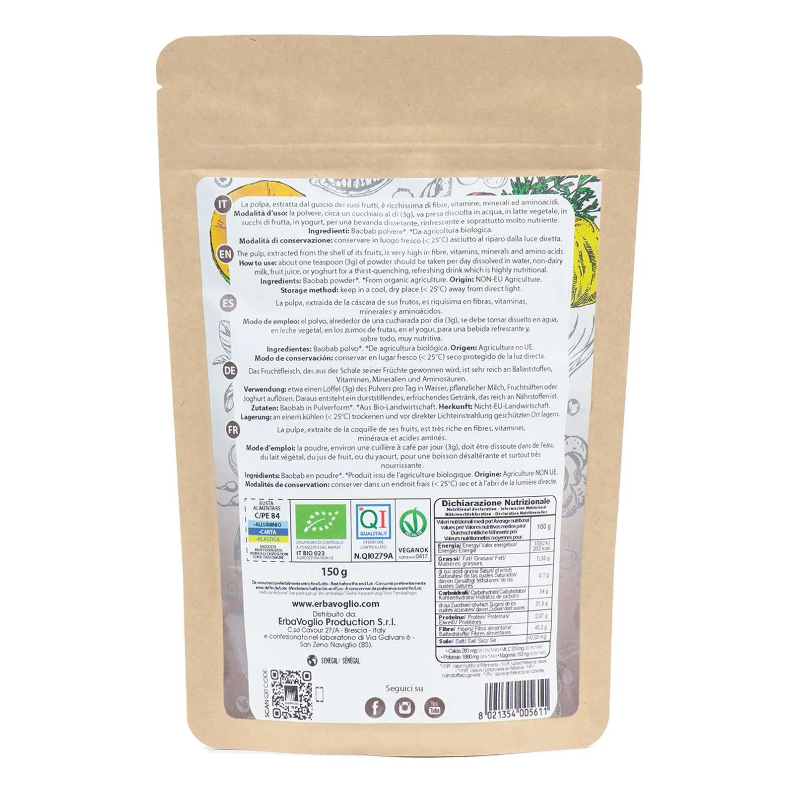 Grazie al suo contenuto di fibre e al profilo nutrizionale ricco, la polvere di Baobab è apprezzata come parte di una dieta equilibrata per il benessere generale.