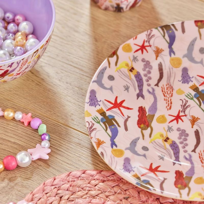 Rice Piatto Piano Sirene Lavanda è realizzato in melamina, pratica, resistente e indispensabile per la vita di tutti i giorni, feste di compleanno, picnic e momenti speciali!