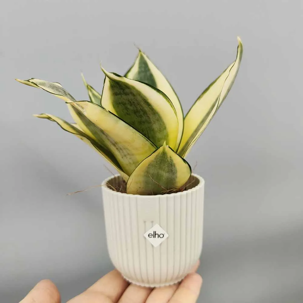 La Sansevieria Sansevieria trifasciata “Golden Hahnii” nella versione “vaso vibes” la pianta non è direttamente piantata nel vaso, ma inserita con il proprio vaso da coltivazione in modo da rendere agevole tutte le irrigazioni e manutenzioni alla stessa evitando spiacevoli marcescenze.