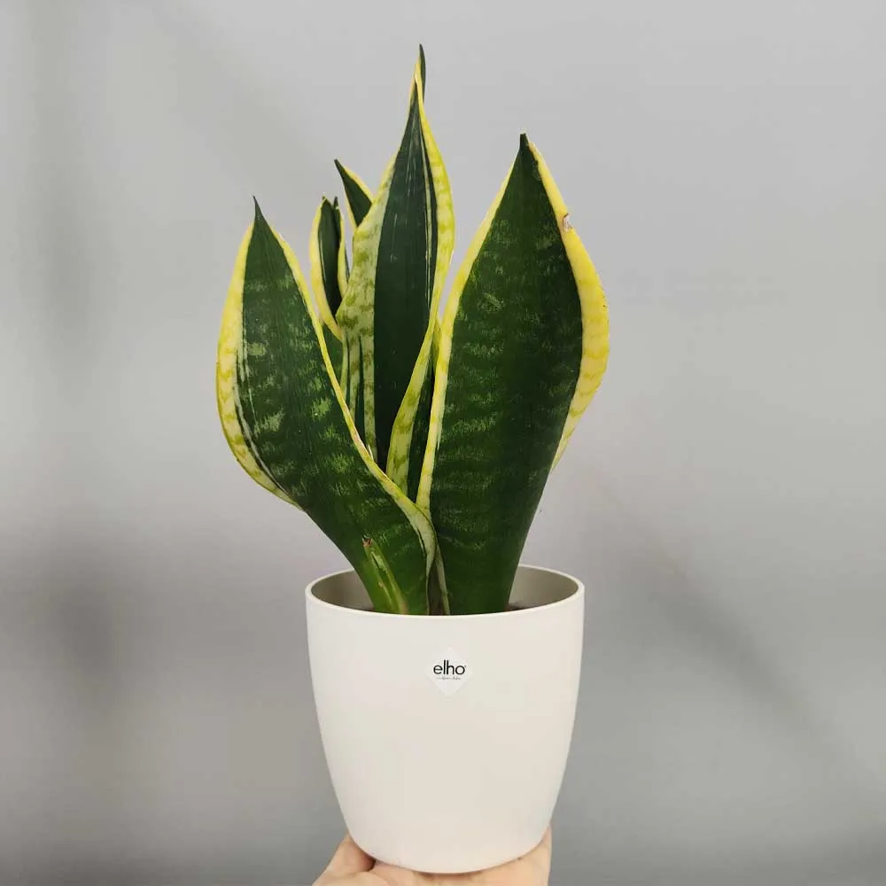 La Sansevieria trifasciata ‘Jade Dwarf’ è una varietà molto raffinata e deliziosa della classica “lingua di suocera”, perfetta per chi desidera un tocco di verde senza occupare troppo spazio. Originaria delle regioni aride dell’Africa, questa succulenta si è adattata a vivere in condizioni difficili, dimostrandosi una pianta estremamente resistente e facile da coltivare. Le sue foglie, carnose e rigide, crescono erette formando una rosetta densa e compatta. Il colore di base è un intenso verde giada, che le ha valso il nome, spesso arricchito da margini più chiari o screziature giallastre.