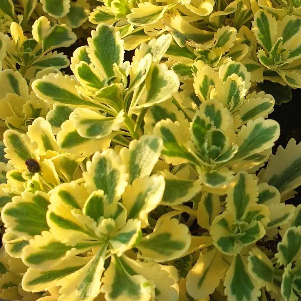 Il sedum selskianum variegatum è una pianta succulente semiperenne caratterizzata da foglie variegate verde e giallo con bordure frastagliate che caratterizzano ancora di più il suo portamento cespuglioso. I suoi colori variano al variare della stagione arrivando anche a sfumature aranciate intenso durante l’ estate. E’ una varietà resistente al freddo ideale e perfetta per portare e donare colore e carattere in tutti gli spazi esterni (terrazzi, balconi o giardini); infine ben si accosta ad altre varietà di sedum, delosperma e sempervivum per creare composizioni o ambientazioni variegate.