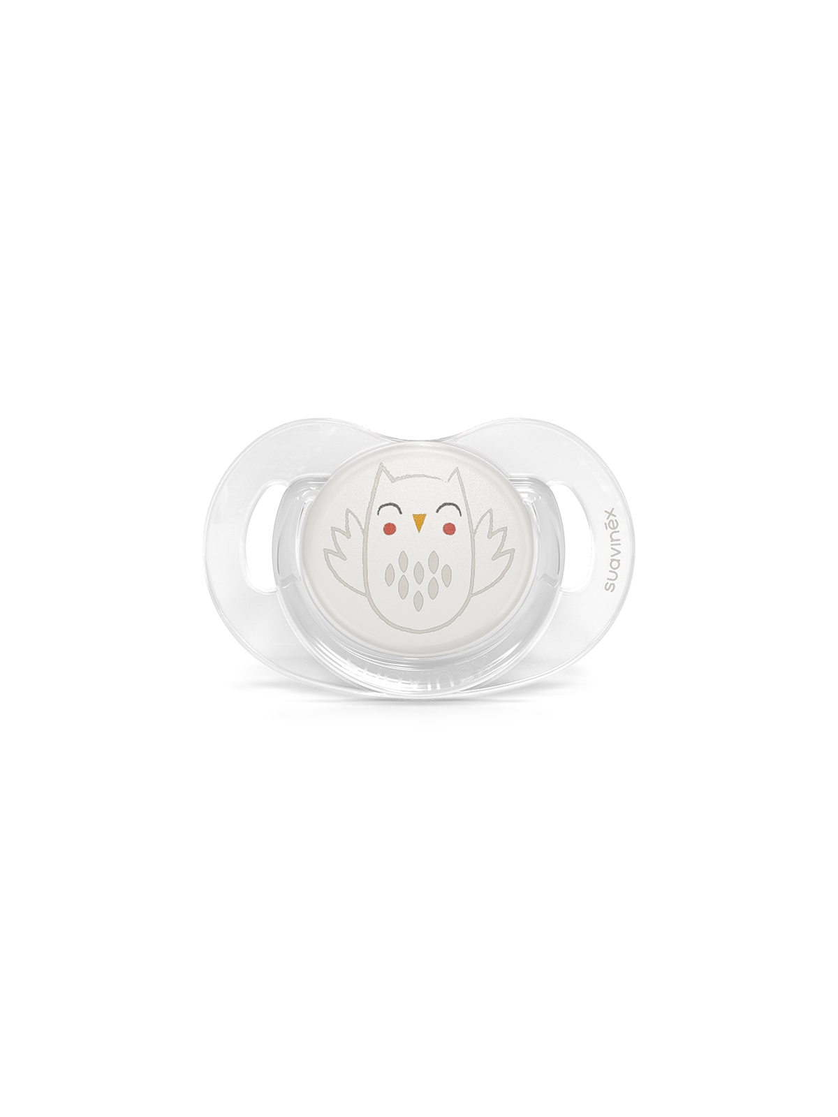 Succhietto nuova collezione bonhomia con tettina sx pro. 0-6 mesi. decoro civetta bianco
