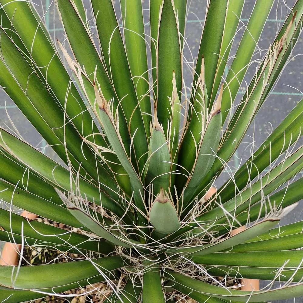 La Yucca filifera, più comunemente nota come “Palma Pita” o “Giant Spanish Dagger”, è una succulenta arborescente appartenente alla famiglia delle Asparagaceae. Questa specie si distingue per il suo tronco legnoso, sormontato da dense corone di lunghe foglie rigide di colore verde-bluastro, i cui margini si sfilacciano in caratteristici filamenti bianchi. Apprezzata per la sua imponente presenza, la sua resistenza alla siccità e al freddo, è una pianta ideale per giardini oppure come esemplare in vaso per punti focali su terrazzi o balconi.