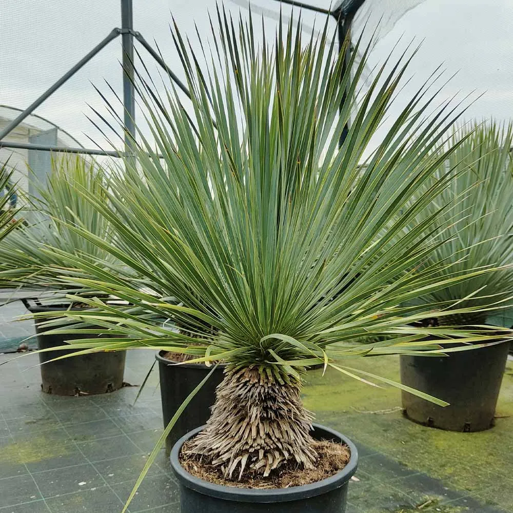 La Yucca rostrata, comunemente nota come “Beaked Yucca” o “Silver Yucca”, è una succulenta arborescente appartenente alla famiglia delle Asparagaceae, originaria delle regioni del Messico settentrionale e del Texas occidentale. Questa specie si distingue per il suo elegante tronco singolo o ramificato, sormontato da una densa corona di foglie strette, lineari e di colore verde-bluastro o grigio-argento, che ricordano una coda di rondine. Apprezzata per il suo aspetto scultoreo, la sua resistenza alla siccità ed anche al freddo: è una pianta perfetta per ambientare giardini aridi, rocciosi o come esemplare isolato dal grande impatto visivo per arricchire terrazzi o balconi importanti.